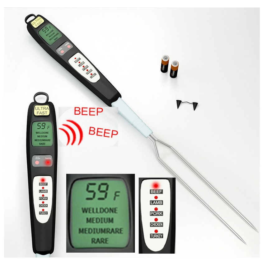 The thermometer is not hard to use, but it can get a bit unwieldy at times, especially when you are handling several items simultaneously while cooking. It is very large and feels well made. The prongs were easy to clean. I expect it to last me a few years at least.