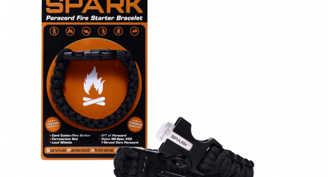 SPARK (TM) Fire Starter Paracord Bracelet with Emergency Whistle Side Release Buckle