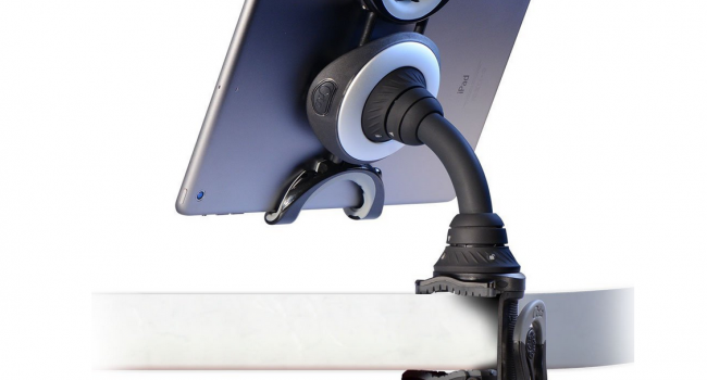 This is the most innovative and unusual tablet mount that I have come across. Instead of clamps and other mounting gears it features a single, strong yet flexible, stand arm. At first I was skeptical that this “tail” would be strong enough to support the weight ot my iPad, but immediately after the first use I was convinced of its structural stability. It is also a very fun and esthetically pleasing stand. It even looks interesting in its own right, without any tablets standing on it.